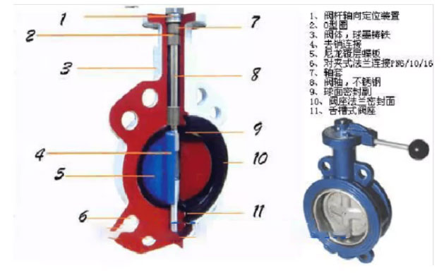 蝶閥的閥瓣是圓盤,圍繞閥座內的一個軸旋轉,旋角的大小,便是閥門的開閉度。