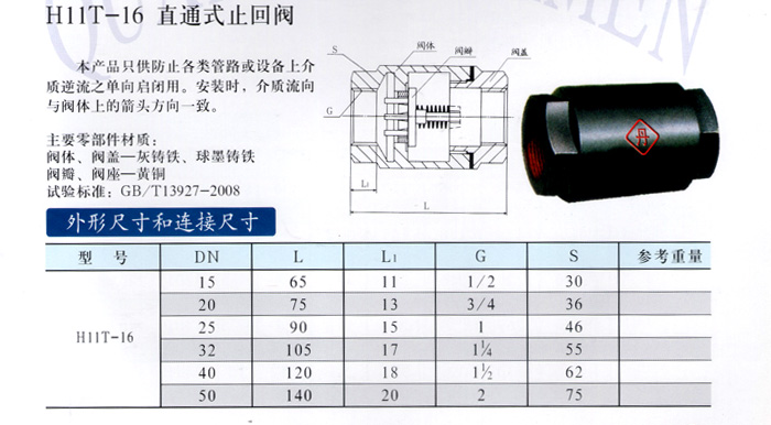 H11T-16 直通式止回閥